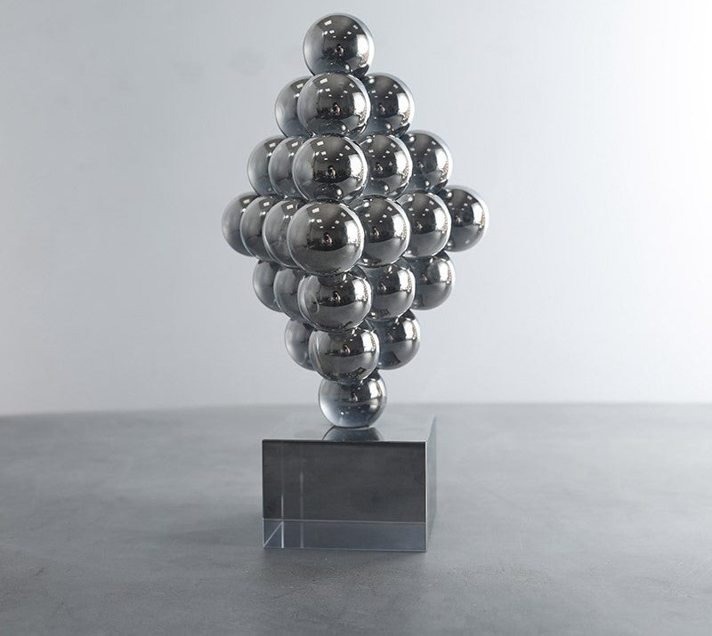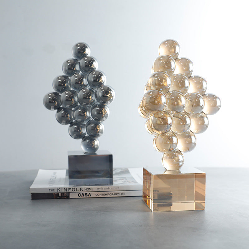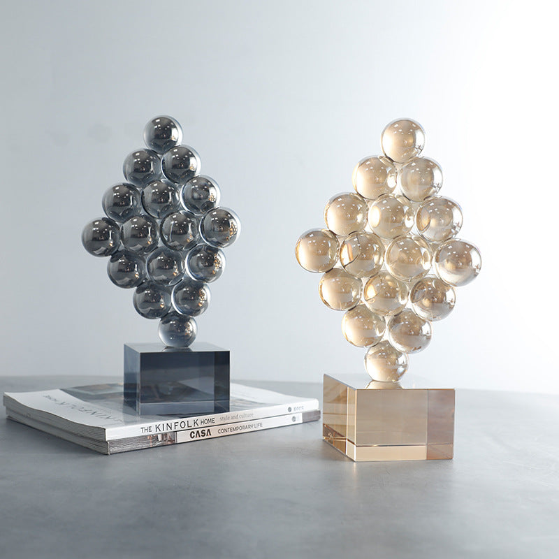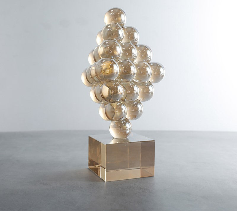 DESCRIPTION: An abstract scrulpture stacked with crystal spheres on a crystal base. it can be used on a book, coffee table and shelf.