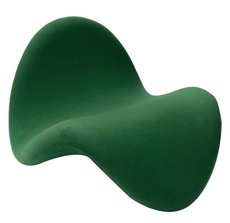 DESCRIPTION: This image features three distinct and modern lounge chairs, each boasting a highly sculptural and ergonomic design with smooth, organic curves. Upholstered in vibrant, solid colors—a rich magenta, bright yellow, and warm orange—they create a striking visual impact. The chairs are arranged on a reflective surface, emphasizing their unique, fluid forms and bold contemporary aesthetic.