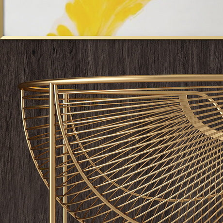 DESCRIPTION: The chair features a striking, semi-circular frame crafted from slender, gold-toned metal wires, creating a visually light yet elegant structure for the seat and backrest. Draped over the chair is a plush, white faux fur throw, adding a layer of warmth, texture, and opulent comfort that beautifully contrasts with the sleek metallic frame. The design is both contemporary and glamorous, making it a sophisticated accent piece for a chic interior.