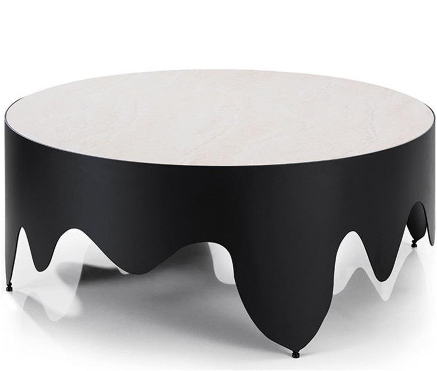 DESCRIPTION: The overall aesthetic is modern and sculptural, making the table a statement piece that blends functionality with artistic expression. It appears to be made from a robust material, possibly wrought iron or another metal, given the name.