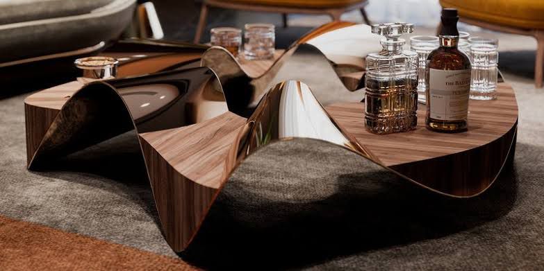 DESCRIPTION: This coffee table is a striking piece that balances weight and lightness, giving it a unique, cloud-like appearance. The tabletop is a solid slab of marble with a beautiful, dark veining. The most distinctive feature is the set of five oversized, clear glass legs, which are hollow and have a subtle gradient of white at the top, creating a soft and diffused effect. The contrast between the heavy, dark stone and the seemingly weightless glass makes this table an architectural and artistic statement.