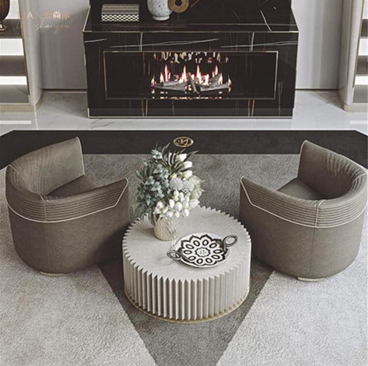 DESCRIPTION: This is a sophisticated and robust armchair, upholstered in a muted brown or taupe fabric. It features elegant vertical pleating on the inner backrest and arms, adding a refined textural detail. The chair has a sturdy, contemporary silhouette and is elevated by chic, square gold-finished feet, lending a touch of subtle luxury.