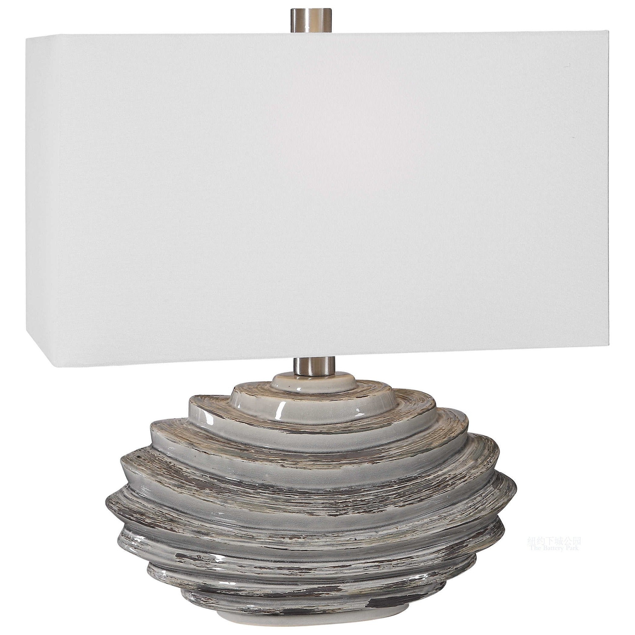 DESCRIPTION: This lamp is enhanced by brushed plated accents, its modern aesthetic is complemented by a touch of rustic charm. The white linen fabric rectangle hardback shade adds a classic touch. Embracing the uniqueness of fired glazes on ceramic lamps adding character to each piece.