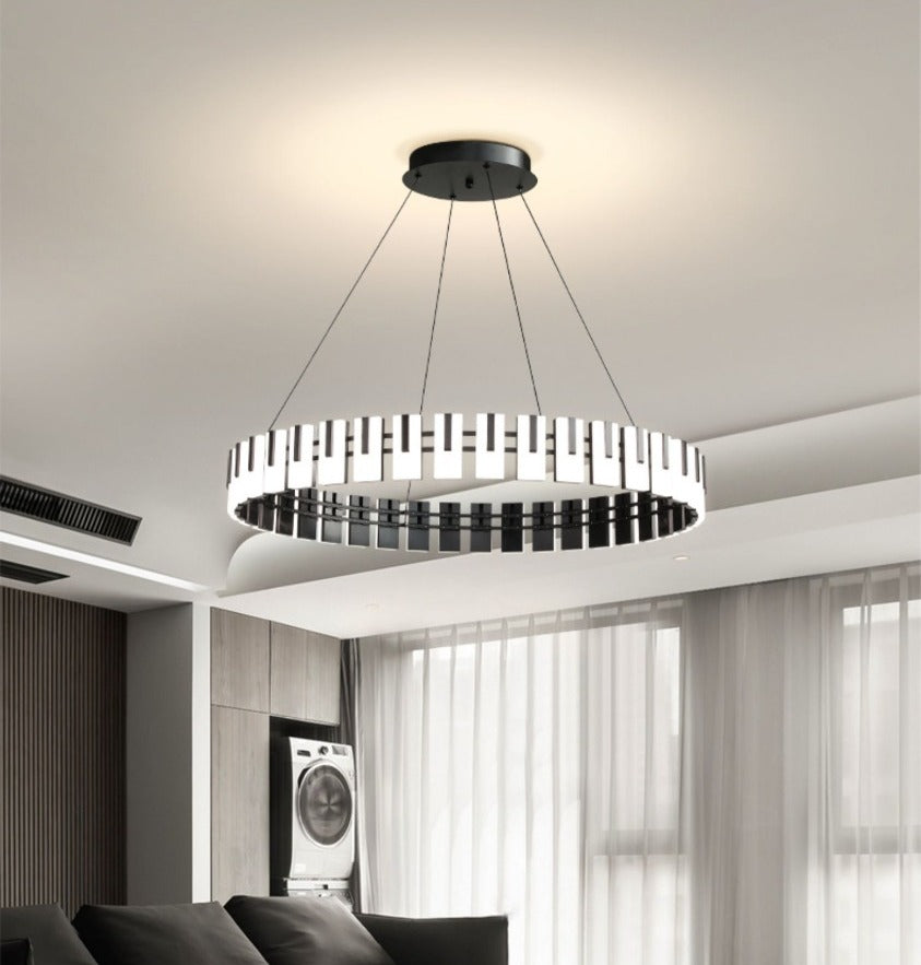 The Light Chandelier will undoubtedly be very prominent in a home, and can therefore help to give the final decorative finishing touch, to either the living room, hallway or over the dining table. The round shape, cylinders gives a nice and comfortable, almost floating, ring of light.